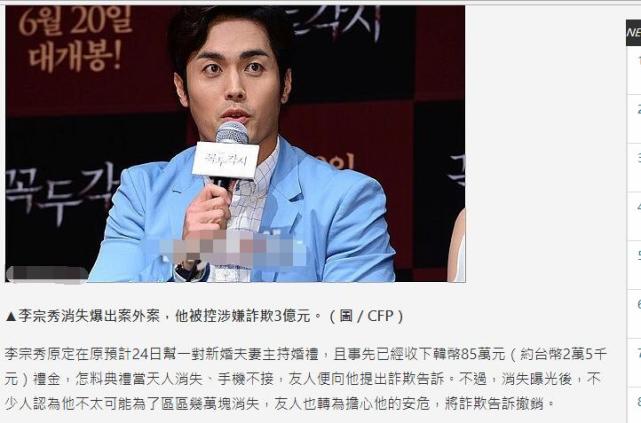 韩国男星失踪半个月被指诈骗5000元跑路 现牵
